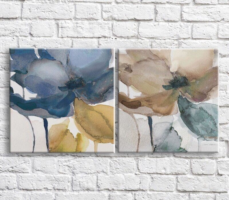Pictură ArtPoster Brown and Blue poppy on a White background, diptych (3467723)
