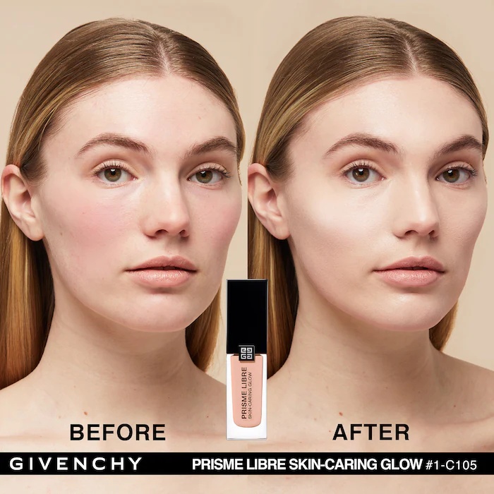 Givenchy Prisme Libre Skin-Caring Glow oferă o acoperire naturală, radiantă și hidratare profundă. Particulele reflectante și uleiurile speciale oferă un efect de strălucire instantanee timp de până la 12 ore. Disponibili în patru culori diferite, pigmenții corectează tonul pielii și ascund imperfecțiunile minore pe tot parcursul zilei.