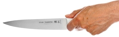 Cuțit Tramontina Professional pentru tăierea cărnii cu o lamă de 20 cm. Lama forjată este realizată din oțel inoxidabil carbon cu adăugare de crom și molibden DIN 1.4110, 2 mm grosime. Lama nu își pierde luciul, rezistentă la coroziune și la temperaturi ridicate. Își păstrează marginea foarte ascuțită pentru mult timp. Lama în formă de V, garantează o tăiere perfectă și precisă, chiar și după utilizarea prelungită. Mâner anatomic - masiv, confortabil, cu o prindere puternică comodă - din polipropilenă. Acoperirea antibacteriană specială Microban cu efect antiderapant protejează împotriva mirosurilor, murdăriei și mucegaiului, previne creșterea ciupercilor și microbilor.