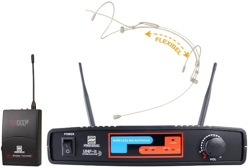 Set completinclus in pachet: receiver, pocket transmitter, cablu audio, alimentator, 2 baterii AAA, cablu 6.3 mm jack -> 3.5mm jack, microfon de tip headset/raza: pana la 90m