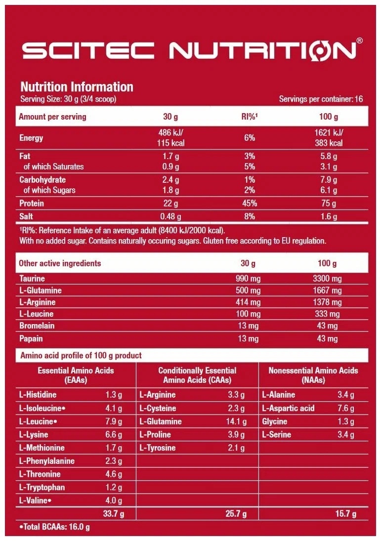 Cu un conținut scăzut de lactoză, 100% Whey Protein Professional are o cantitate mare de L-glutamină, aminoacidul cel mai răspândit în mușchiul uman. „Ești ceea ce mănânci!” — de aceea, Scitec Nutrition a completat formula 100% Whey Protein Professional cu un amestec de enzime care ajută organismul să absoarbă și să utilizeze pe deplin întreaga gamă de „material de construcție”, transformând eforturile tale în mușchi spectaculoși!