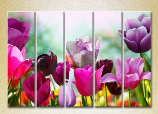 Pictură Rainbow Polyptych Field of colorful tulips 03 (2932860)
