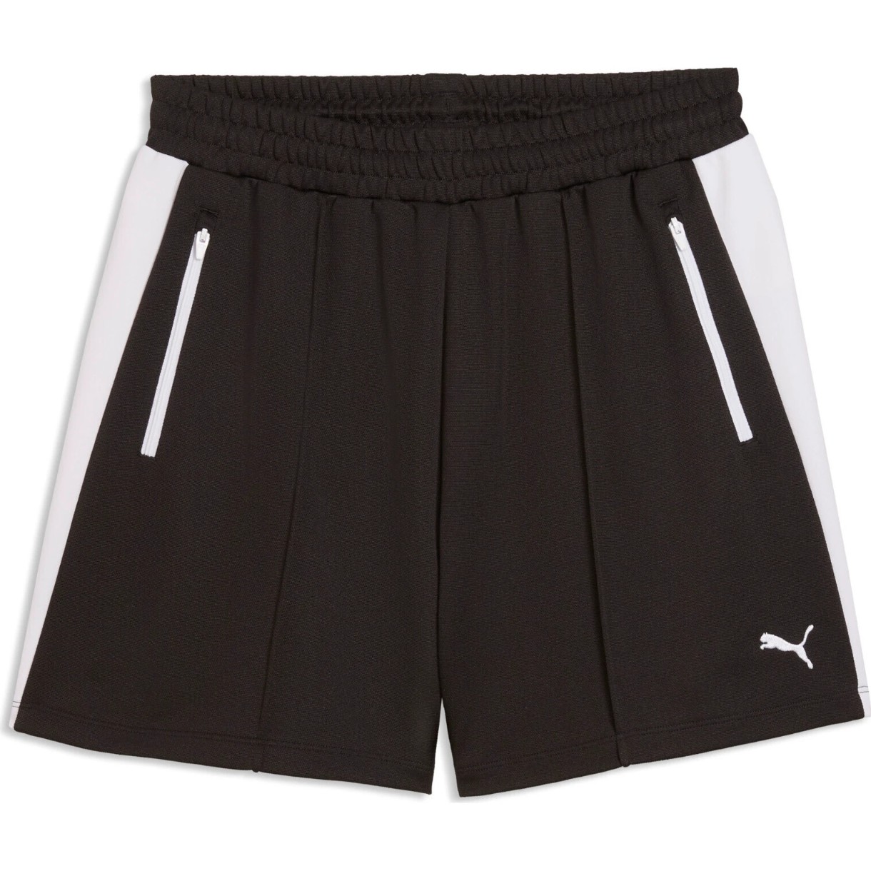 Elementul central rămân dungile emblematice PUMA T7 pe laterale, care adaugă dinamism și recunoaștere vizuală. Logo-ul brodat PUMA Cat pe coapsă completează designul.