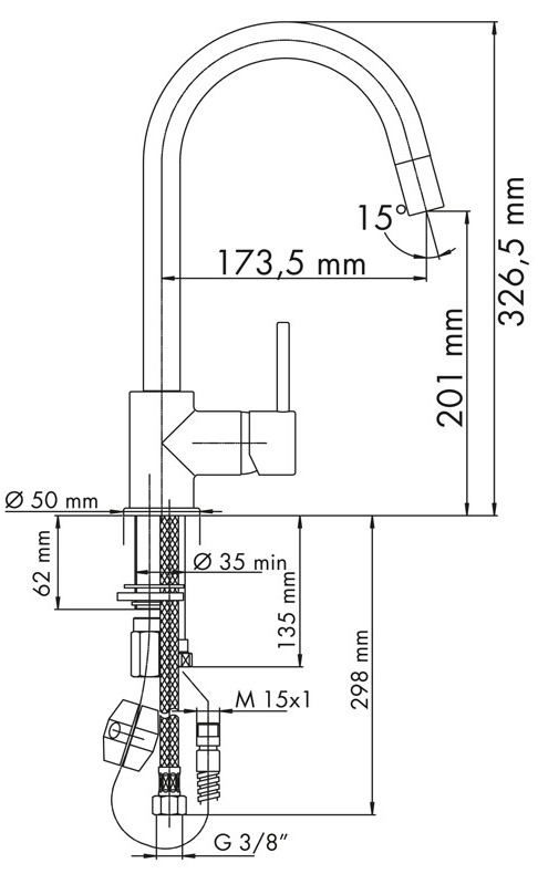 Înălțime pipă201 mm