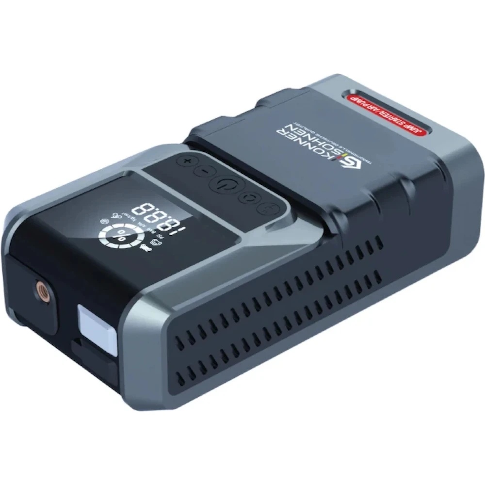 Könner & Söhnen KS JSP-1300 — o soluție eficientă și compactă pentru cei care doresc să aibă la îndemână un instrument de încredere pentru pornirea automobilului și umflarea diferitelor obiecte. Acest dispozitiv, proiectat cu un curent de pornire maxim de 1300 A și un curent nominal de 650 A, oferă o performanță excelentă chiar și în condiții dificile. Compresorul încorporat are o capacitate de 26 l/min, ceea ce îl face ideal pentru umflarea roților de automobil sau bicicletă. La o presiune maximă de 10,3 bar, produsul poate face față cu succes cerințelor utilizatorilor. Avantaje: utilizarea dispozitivului Könner & Söhnen KS JSP-1300 oferă numeroase avantaje. Datorită greutății reduse (1,74 kg) și dimensiunilor compacte de 240 × 152 × 115 mm, este ușor de transportat și de depozitat în portbagajul automobilului.