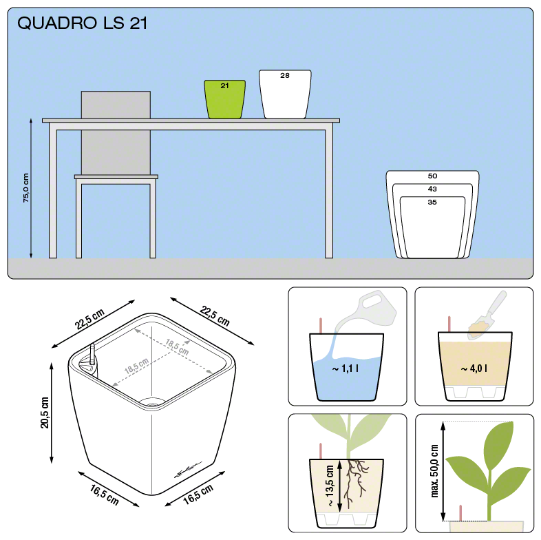 Ghiveci Lechuza Quadro Premium 21 LS White