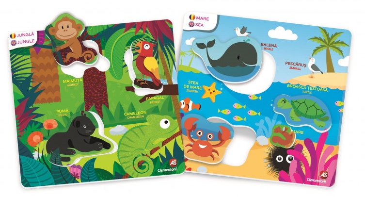Prin joc, copilul învață cărui mediu de viață aparține fiecare animal și caracteristicile habitatelor: Pădure, Savană, Polul Nord și Fermă.