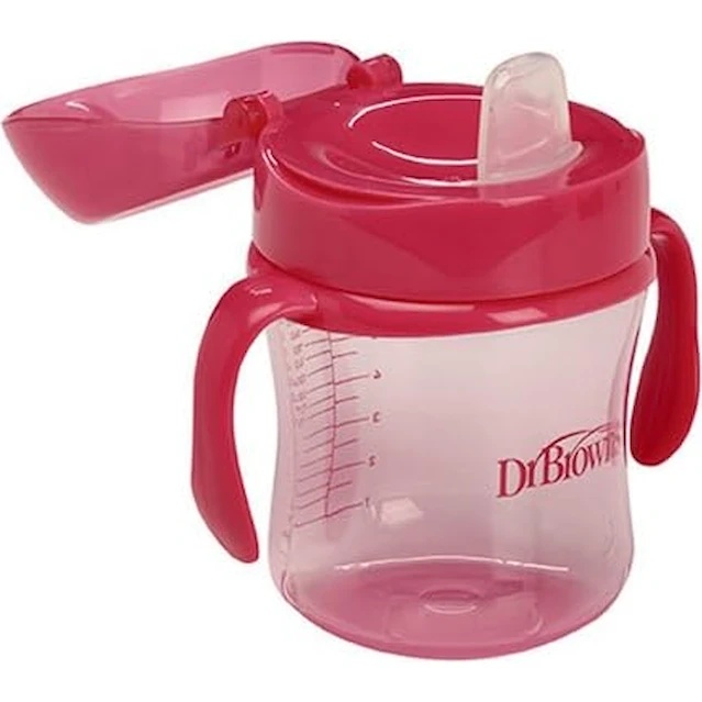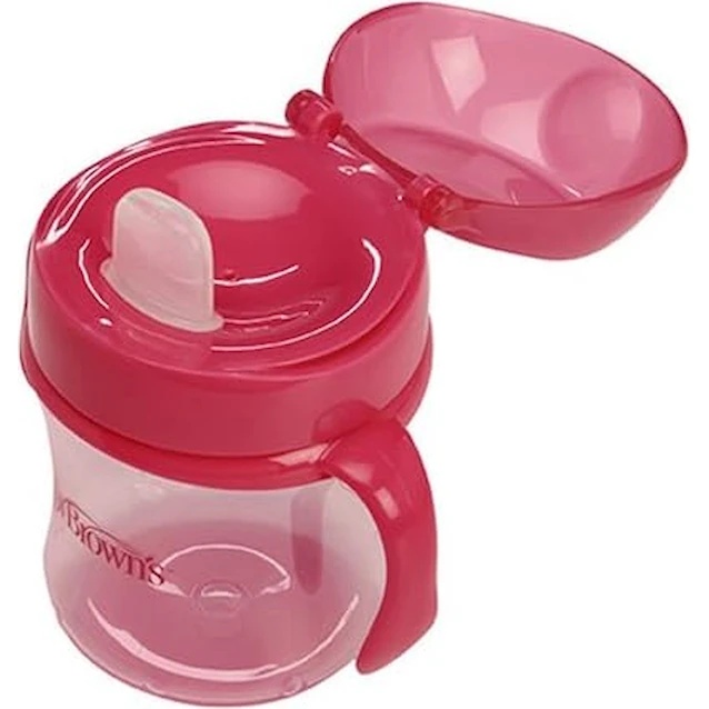 - Capac atașat care rămâne deschis când copilul bea și păstrează ciocul curat când nu este folosit.