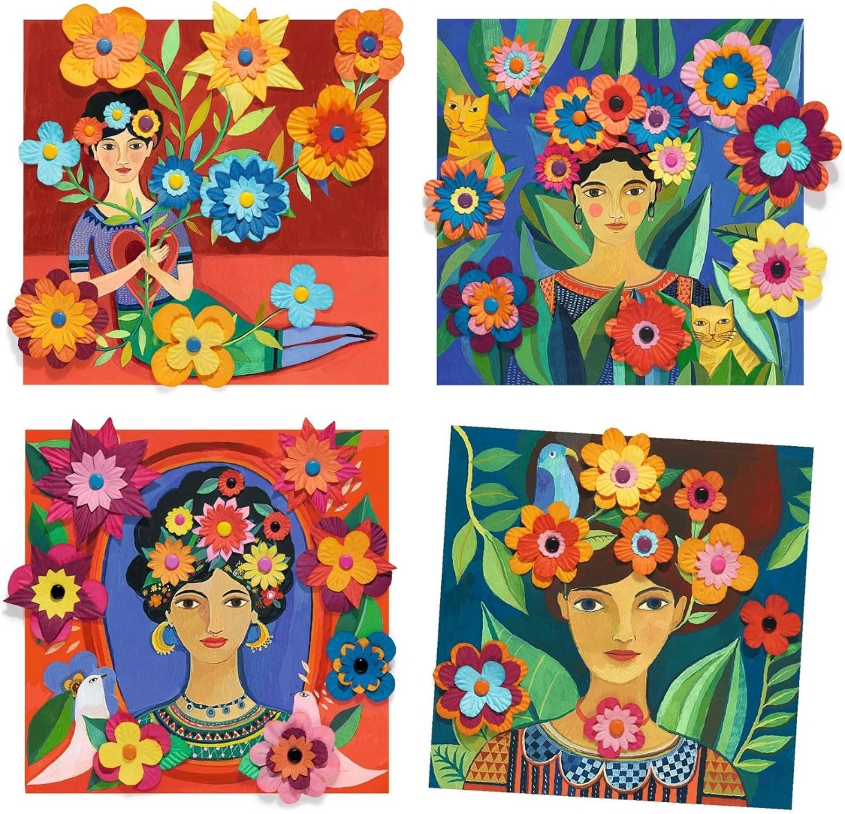 Activitate artistică Djeco – Inspired By: Frida Kahlo – Colaje florale 3D