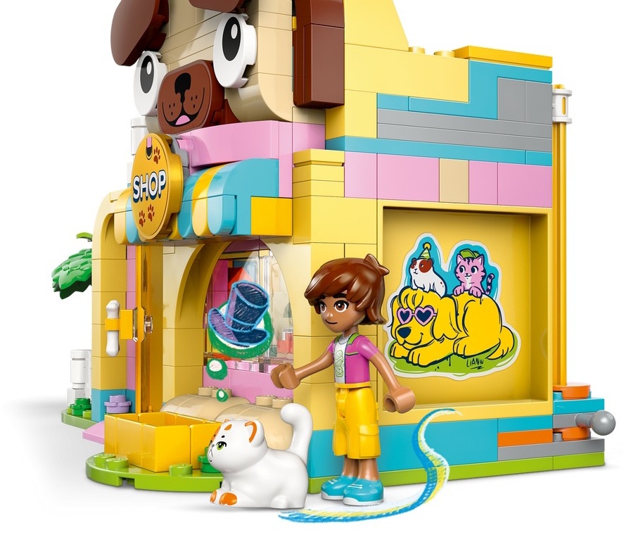 Du animalele de companie în lift până la zona de îngrijire, unde o bandă transportoare le duce prin stațiile de săpunire, spălare și uscare. Apoi, vezi accesoriile la reducere, inclusiv o pălărie de bucătar, o șapcă de baseball și un ghem de lână. Există, de asemenea, bani și o casă de marcat, astfel încât copiii să își poată crea propriile momente pentru vizitatori. Atenție la excrementele de câine! Din fericire, există o lopată pentru curățenie de urgență! Descoperă mai multe detalii distractive, cum ar fi designul clădirii în formă de cățeluș, cu sprâncene mobile și un arc rotitor.