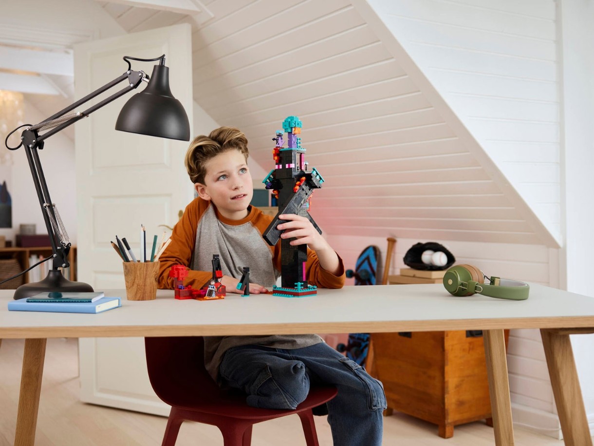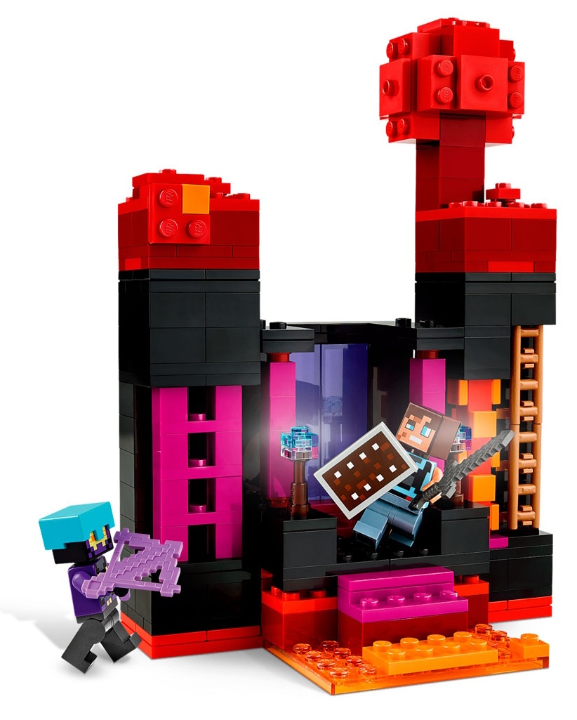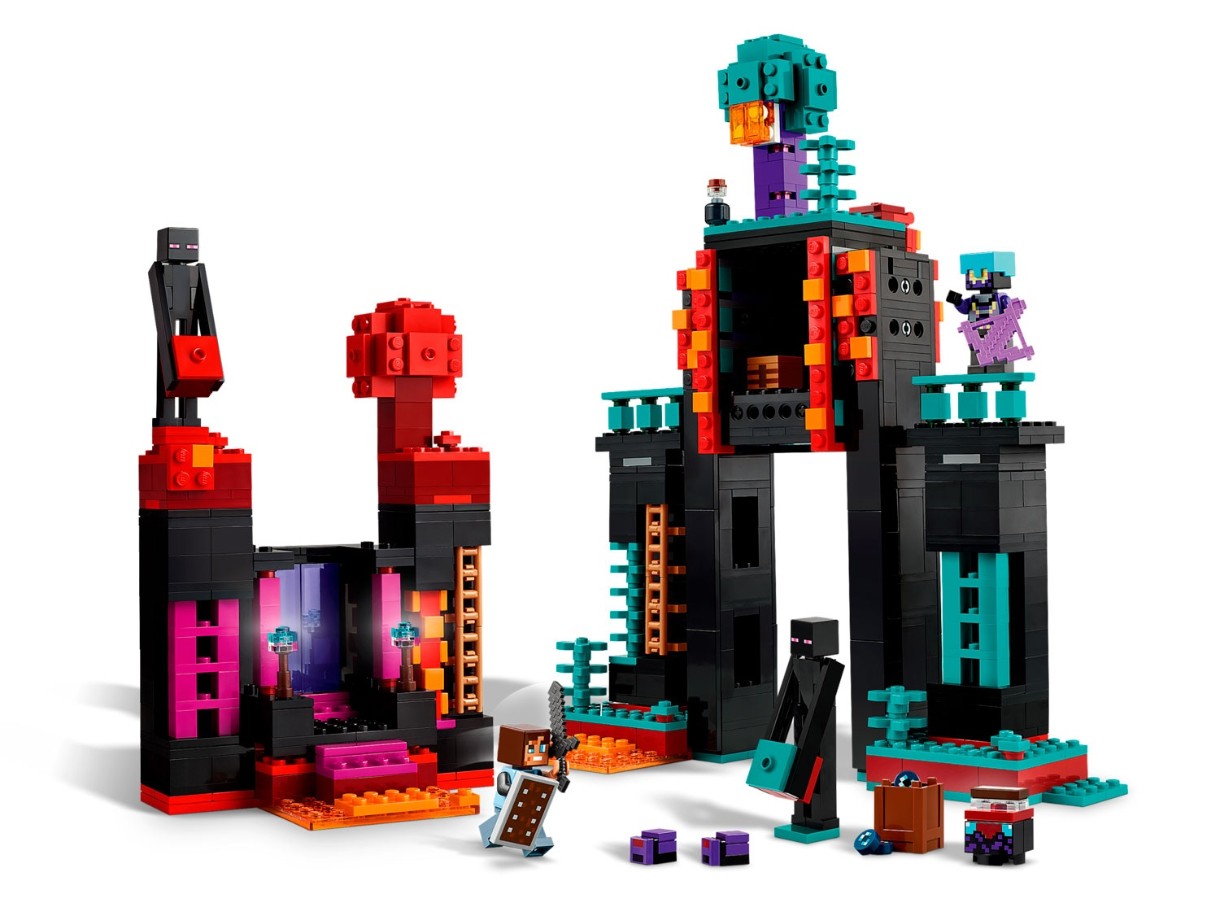 • Designul modular al turnului include o structură principală în formă de Enderman cu un portal către Nether, două camere funcționale, scări, balcoane. Kitul include, de asemenea, elemente de biom - o pădure distorsionată și purpurie. Setul este completat de figurine mici, inclusiv un Enderman și monștri Endermite.
