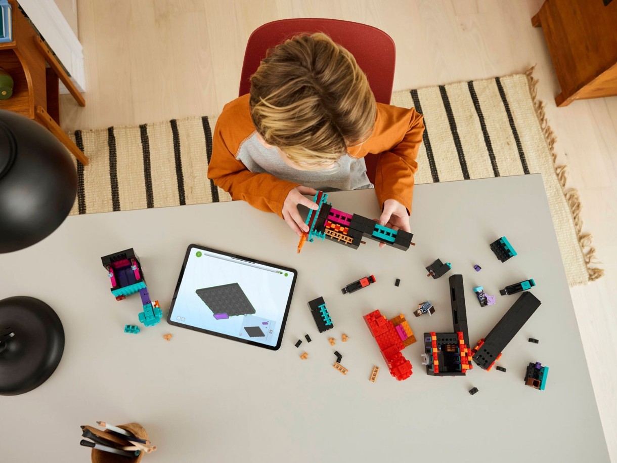 • O caracteristică unică a modelului este capacitatea de a se transforma în două fortărețe codificate prin culori, ceea ce este ideal pentru organizarea de bătălii PvP (jucător contra jucător). Setul complet este format din 867 de piese, permițându-vă să creați o scenă de joc multifuncțională cu multe oportunități de creativitate și aventură în lumea Minecraft.
