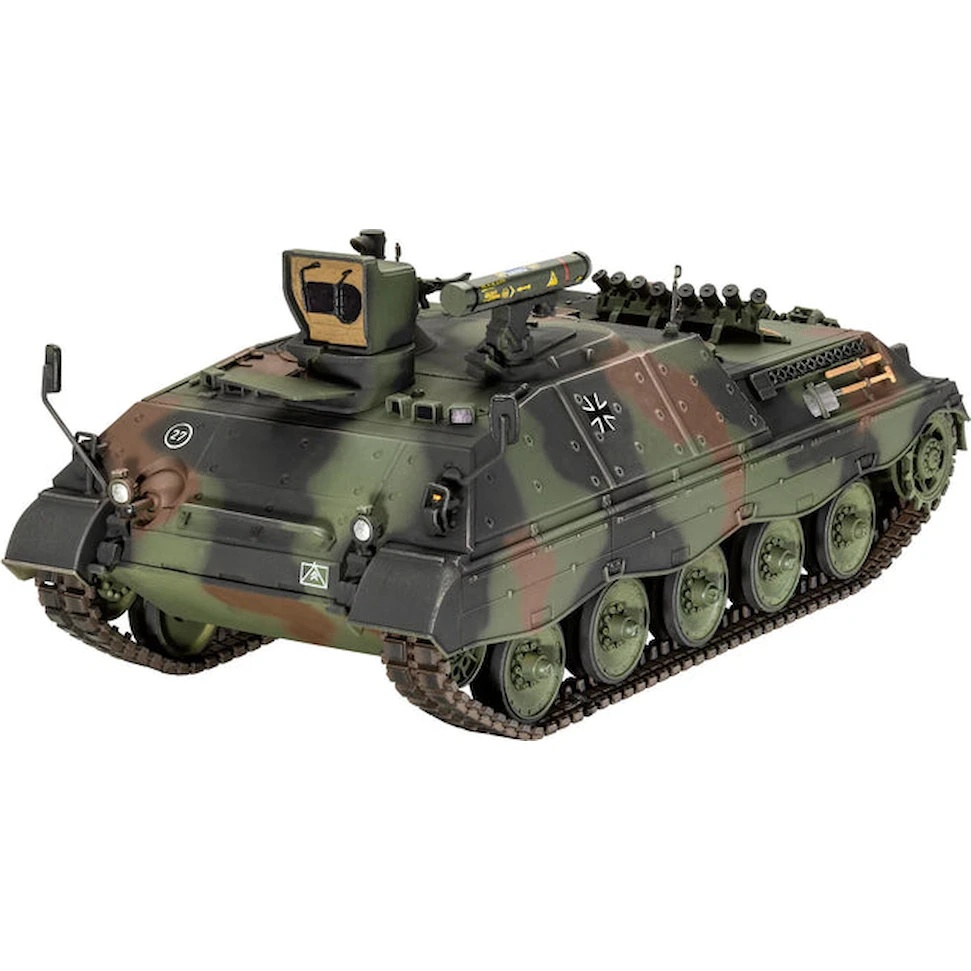 Construiți propria dumneavoastră model al rachetei tanc Jaguar 1, care a intrat în dotarea Bundeswehr-ului german în anii 1970. Acesta este un vehicul de luptă manevrabil, echipat cu un sistem de rachete HOT, capabil să distrugă ținte blindate la distanțe mari și să ofere o excelentă capacitate de trecere, fiind ideal pentru diverse scenarii operaționale.