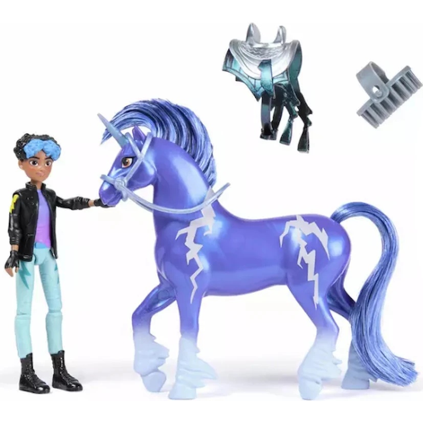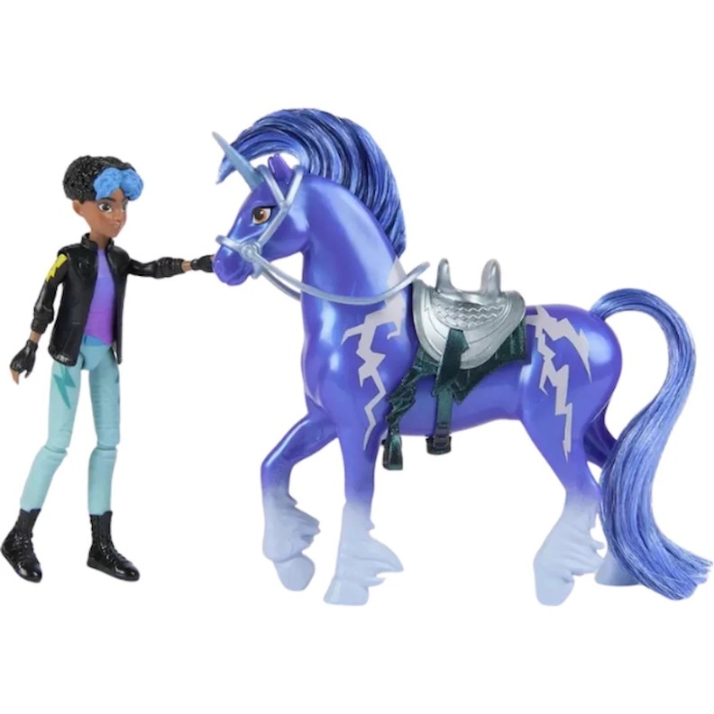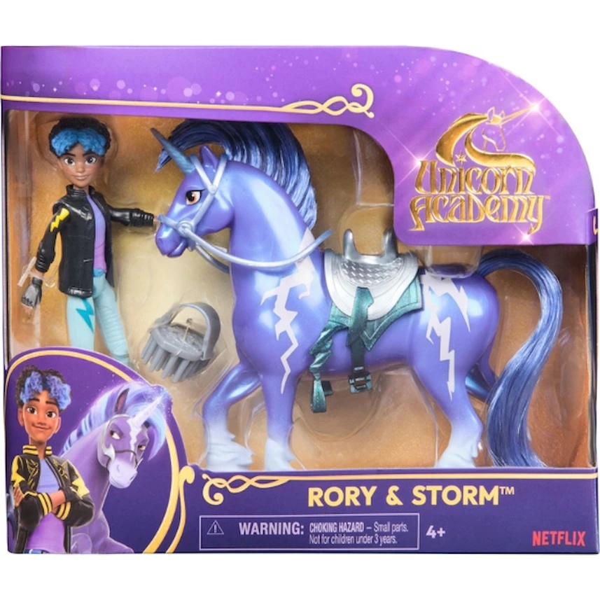 Figurina Rory, înaltă de 11 cm, are detalii realiste și 7 puncte de articulare pentru poziții dinamice. Unicornul Storm, înalt de 13 cm, completează setul cu marcaje frumoase Weather Magic și cu coamă și coadă de culoare albastru închis (perie inclusă).