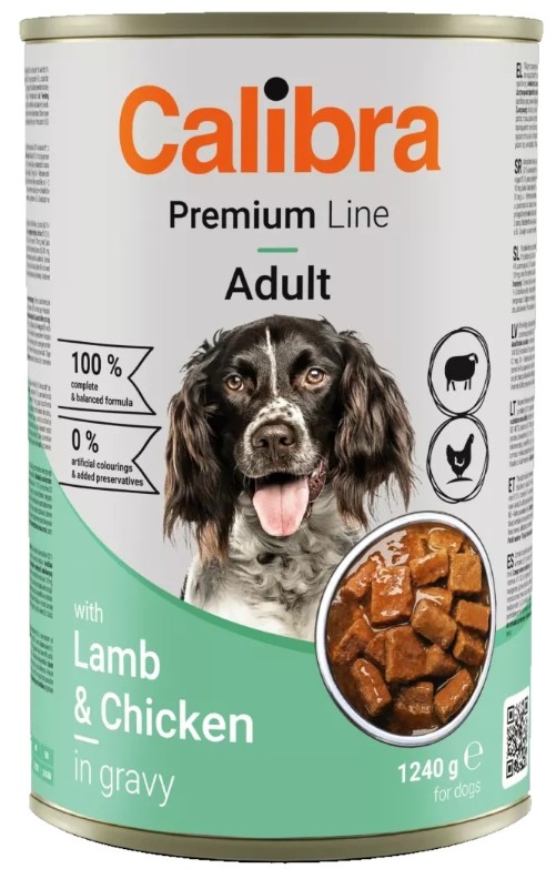 Hrană umedă pentru câini Calibra Premium Line Adult Lamb & Chicken 1240g