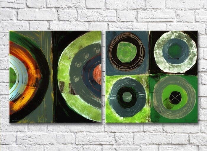 Pictură ArtPoster Abstract canvas Green colored circles (3417481)