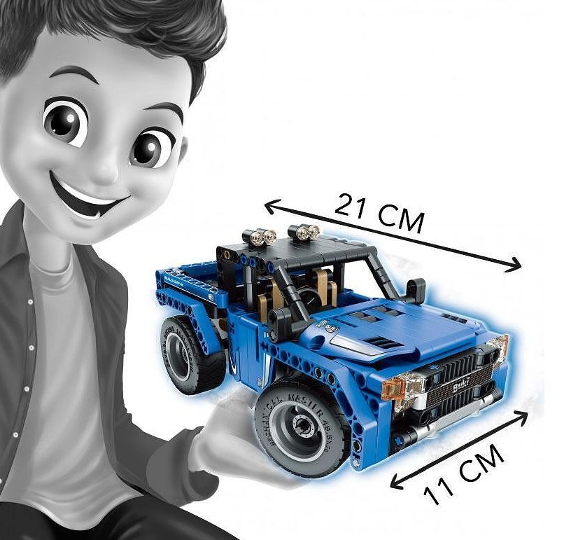 Asamblati vehiculul dvs. de teren urmand instructiunile pas cu pas. Odata asamblata, conduceti masina cu radiocomanda inclusa. Masina se misca in toate directiile: inainte/inapoi/dreapta si stanga. Frecventa 2,4 GHz. 2 modele incluse.
