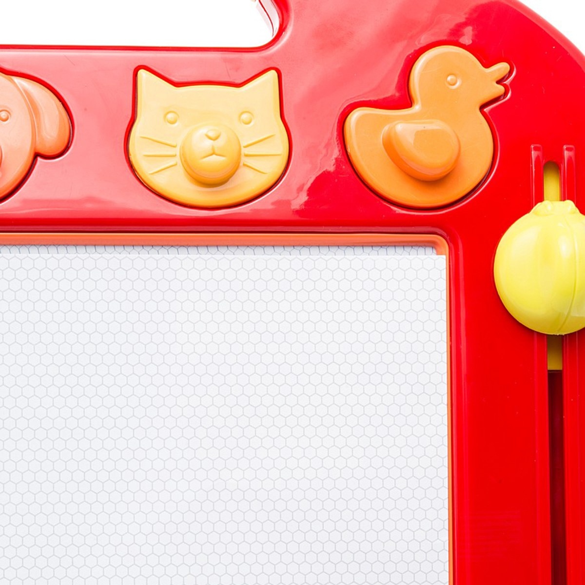 Tabla magnetica - RAPHAEL - ideala pentru primele desene ale copilului tau, o poti folosi atat acasa cat si in masina, in vacanta sau in vizita. Are un suport moale care face tabla mult mai comoda si nu deranjeaza absolut. Contine 4 forme magnetice sub forma de animale .