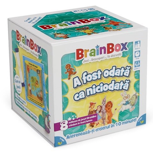 BrainBox A fost odata - Joc carti distractiv, educativ, copii peste 4 ani BrainBox este joc de carti distractiv de memorie si observare, testând atentia la detalii. Ce iti poti aminti in doar 10 secunde? Aceasta editie a jocului cu povesti contine personaje si scene remarcabile din povestile tale preferate. BrainBox A fost odata ca niciodata contine 55 de carti ilustrate manual cu povesti clasice pentru copii, cu o replica din carte, pentru a le aduce la viata. Va veti bucura de: Aladin, Mica Sirena, Cei trei muschetari, Vrajitorul din Oz si multe altele. Jocul ii ajuta pe copii sa-si aprofundeze dragostea pentru literatura, dezvoltând in acelasi timp abilitatile cognitive de observare si de reamintire, care stau la baza invatarii pe tot parcursul vietii.