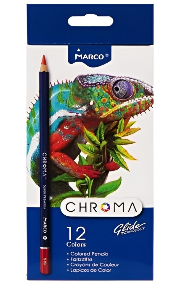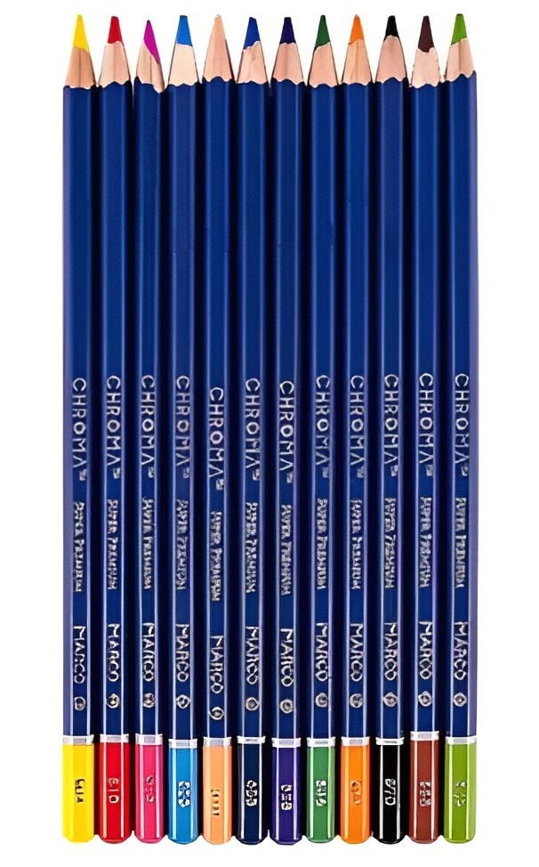 Creioanele colorate Marco Chroma în 12 culori sunt o nouă linie de creioane profesionale Marco. Corpul Chroma este fabricat din lemn de plop, iar diametrul minei este de 3,3 mm.