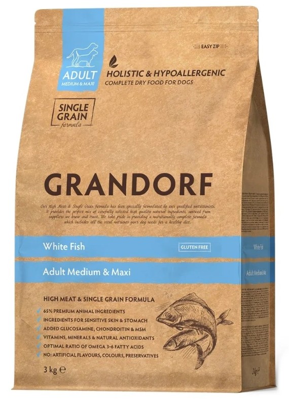 Hrană uscată pentru câini Grandorf Adult Medium & Maxi White Fish 3kg