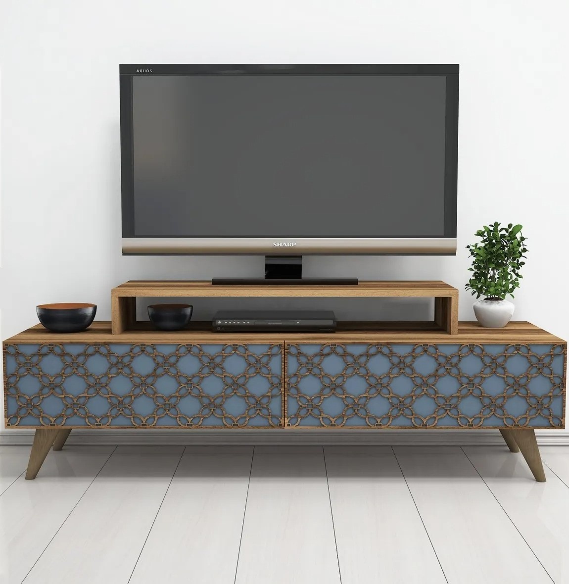Comodă TV Trendy Oras Walnut/Blue 140x48.8x41.8cm GTR000070