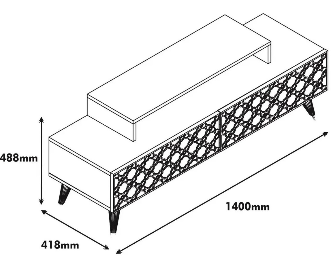 Suportul este confecționat din plăci aglomerate acoperite cu 100% melamină. Grosimea de 18 mm asigură robustețe și stabilitate, iar relieful CNC oferă un detaliu unic și atrăgător. Picioarele din plastic oferă suport suplimentar și asigură stabilitatea suportului.