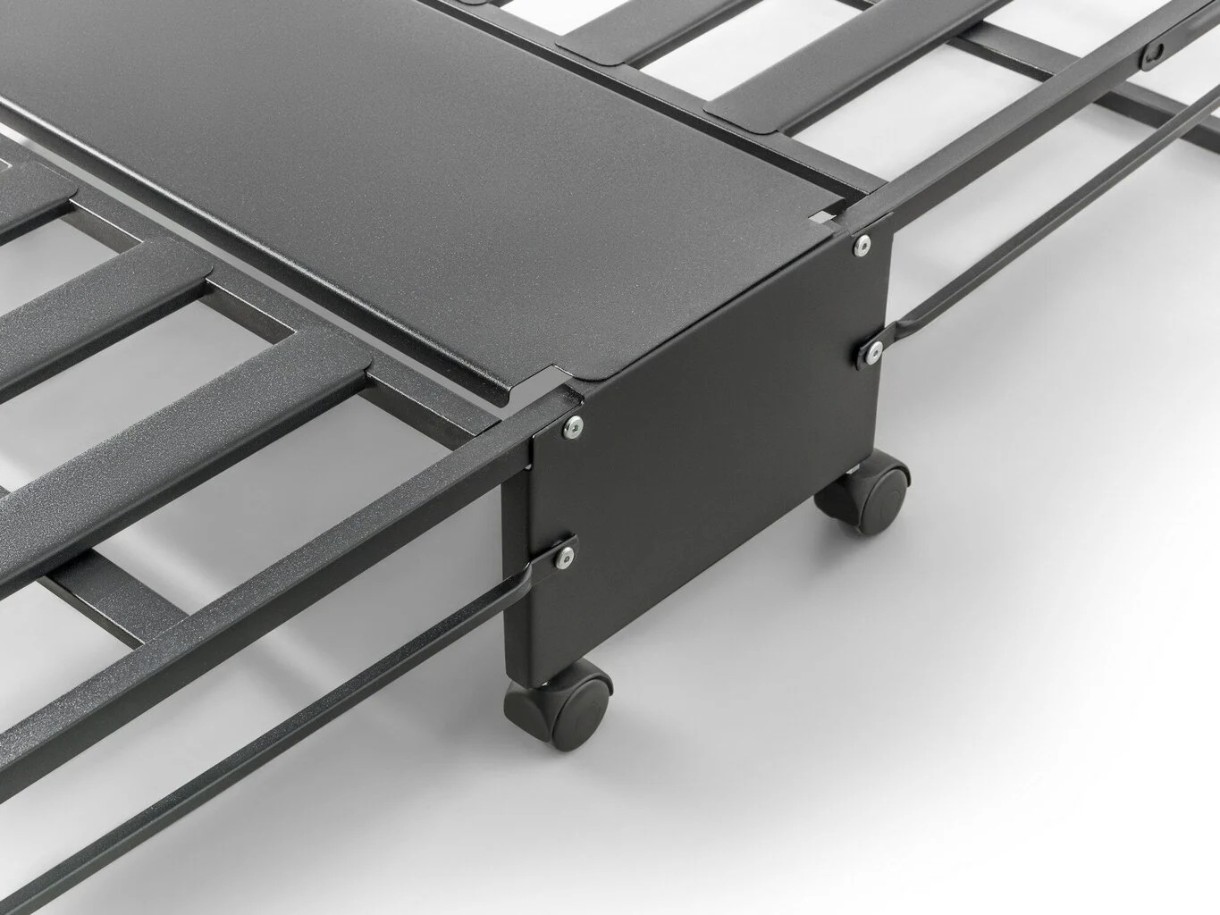 Datorită cadrului metalic solid și acoperirii cu pulbere electrostatică, acest pat pliabil oferă stabilitate și susținere de neegalat. Culoarea elegantă neagră adaugă stil oricărei camere, transformându-l într-un accesoriu modern pentru interiorul casei. Construcția compactă permite depozitarea și transportul ușor, fiind ideal pentru spații mici sau pentru utilizare în călătorii.