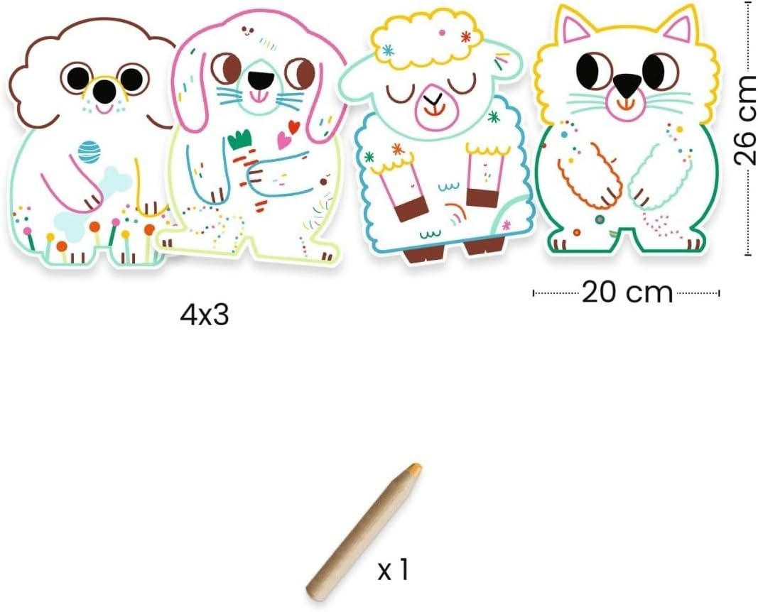 In set12 cartonașe (20 x 26 cm), 1 creion colorat mare