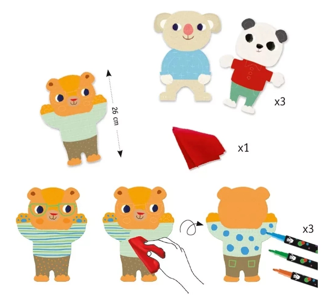 In set3 poze, 3 markere, șervețel, instrucțiuni