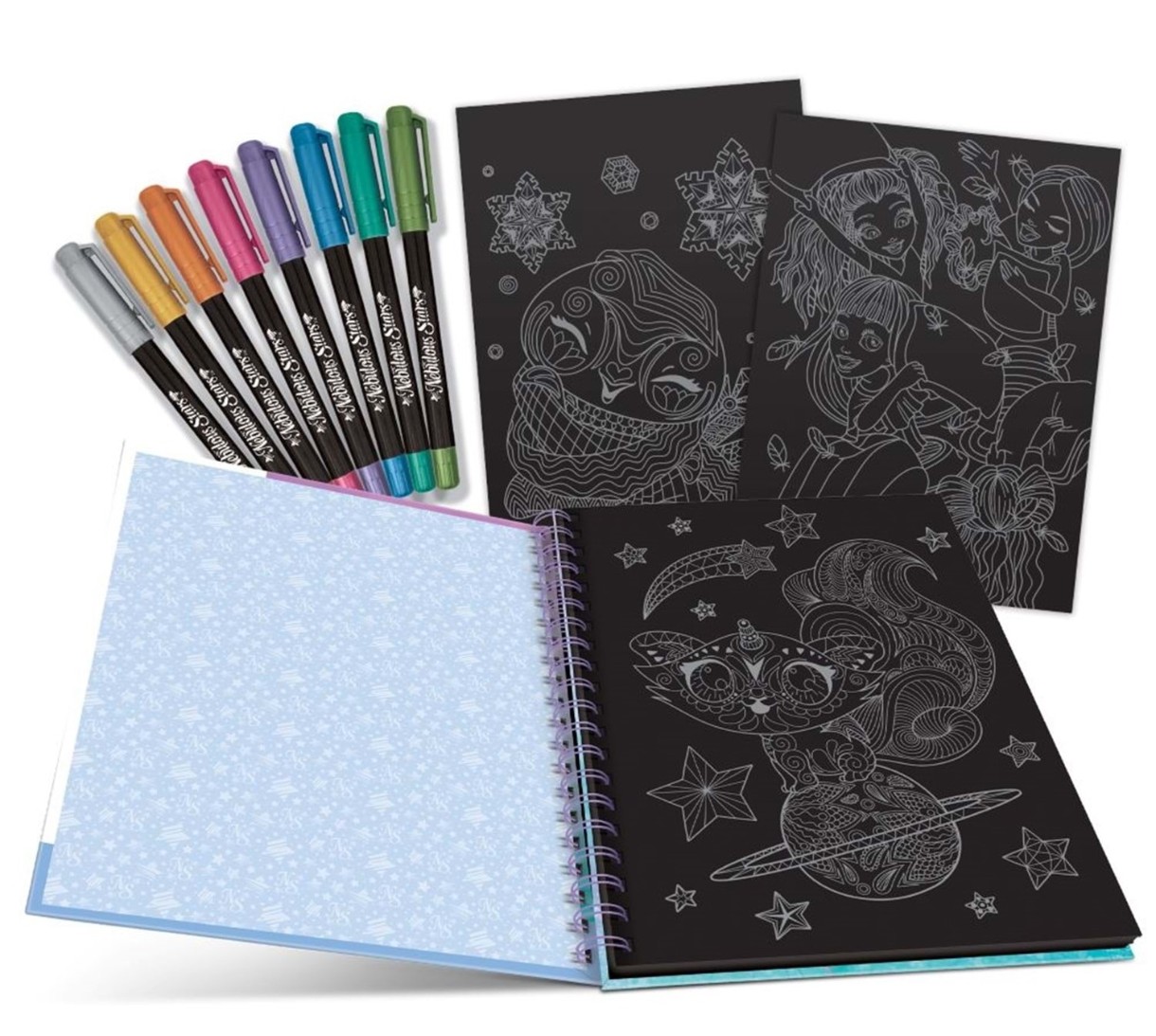 60 de foi de colorat, șabloane de colorat, 8 creioane colorate incluse