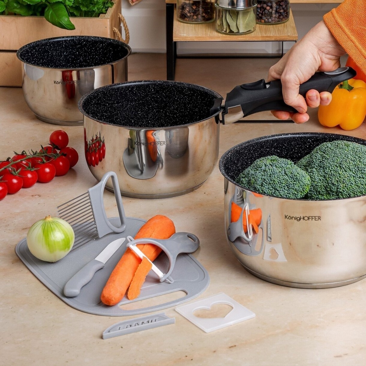 Specificații suplimentareInclus: curățător de legume, cuţit, tăietor de ceapă, huse de protecție pentru cuțit și tăietor de ceapă