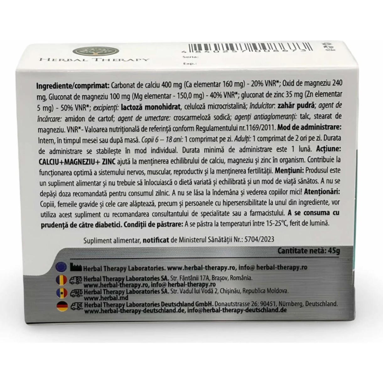 Vitamine Herbal Therapy Calciu + Magneziu + Zinc 30tab