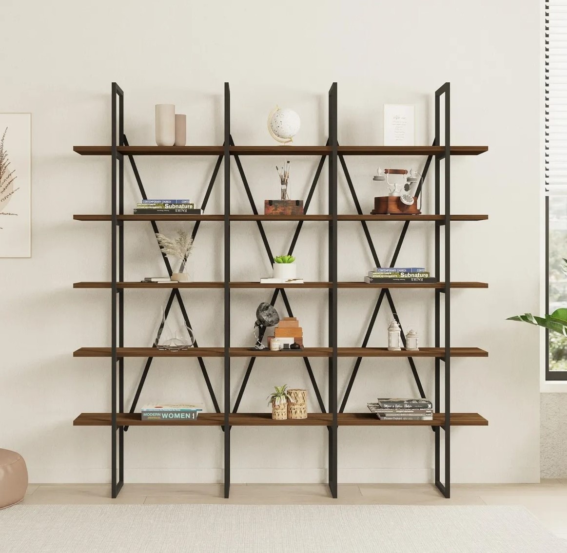 Etajeră Trendy Beylerbeyi Black/Walnut 160x160x26cm GTR000529