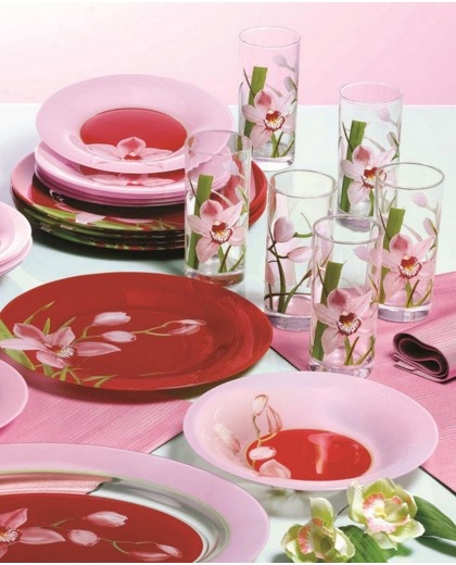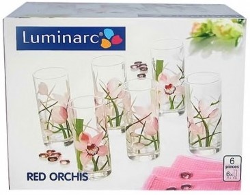 Setul de pahare Luminarc Red Orchis va fi pe placul iubitorilor culorilor vii. Paharele înalte cu imprimeu floral sunt destinate pentru diverse băuturi răcoritoare. Sunt potrivite pentru utilizarea zilnică și pentru mesele de sărbătoare.