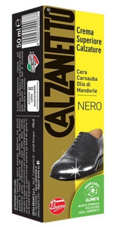Cremă pentru încălțăminte Calzanetto Black– Soluția ideală pentru îngrijirea pantofilor din piele netedă. Reîmprospătează culoarea neagră intensă, hrănește pielea și oferă un luciu elegant. Acoperă zgârieturile fine și protejează pantofii împotriva uscării. Potrivită pentru utilizare zilnică și prelungirea duratei de viață a încălțămintei.