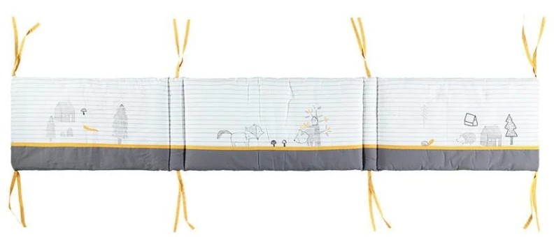 Pentru un pat bine protejat și în siguranță, protectia de pat oferă bebelușului nopți confortabile. Realizat din poplin de bumbac cu un motiv cu animale din pădure, are șnururi pentru a-l fixa pe barele patului.