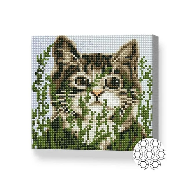 Pictura cu diamante după numere Art Gallery Premium Cat among the grass 20x20cm (BJ1152)