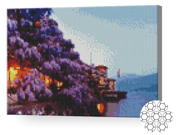 Pictura cu diamante după numere Art Gallery Premium Stâncă înflorită deasupră mării XQB75681