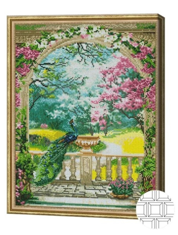 Pictura cu diamante după numere Art Gallery Premium Păun la terasă 40x50cm (QB204288)