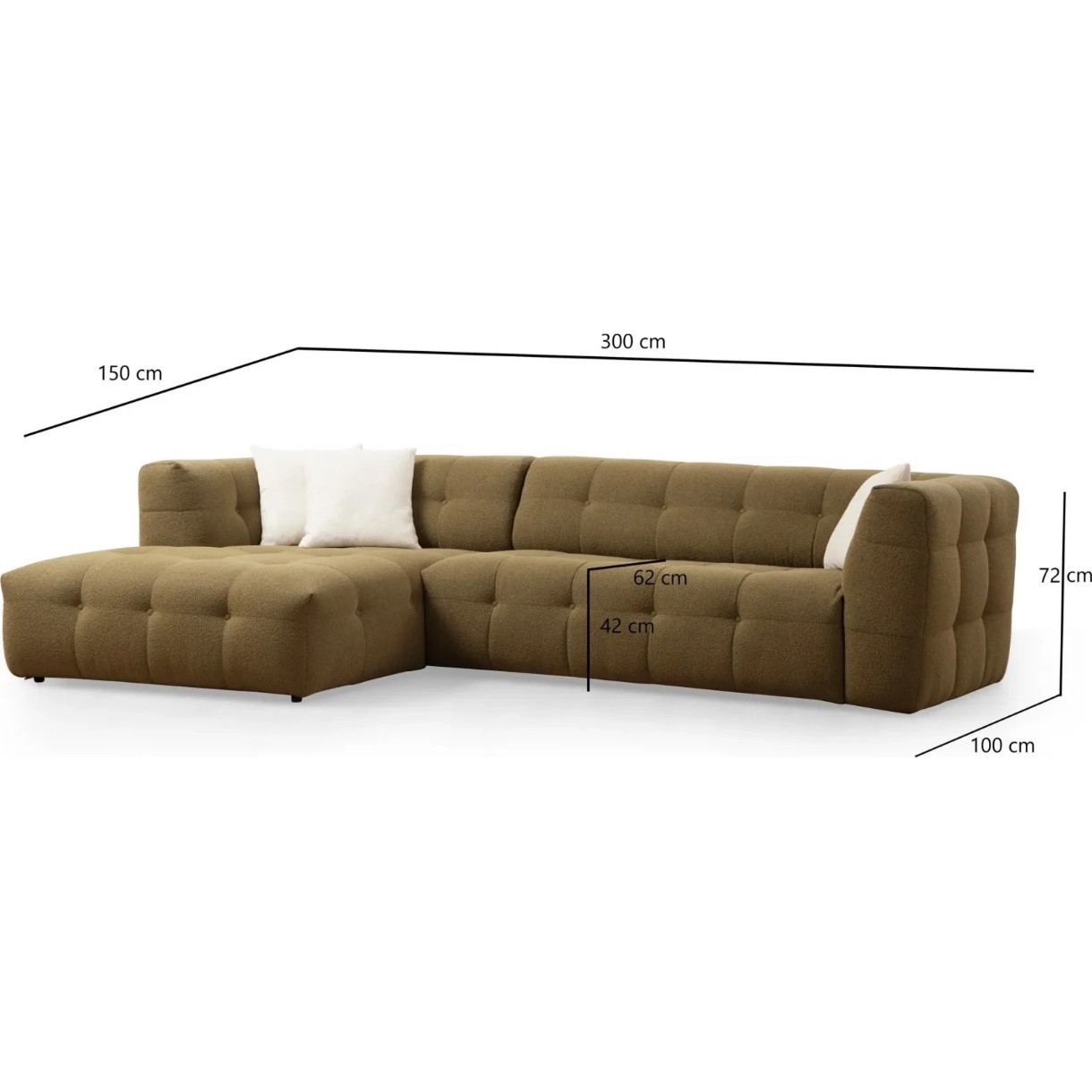 Canapea de colț Trendy Cady Khaki L 300x150x72cm GTR003499