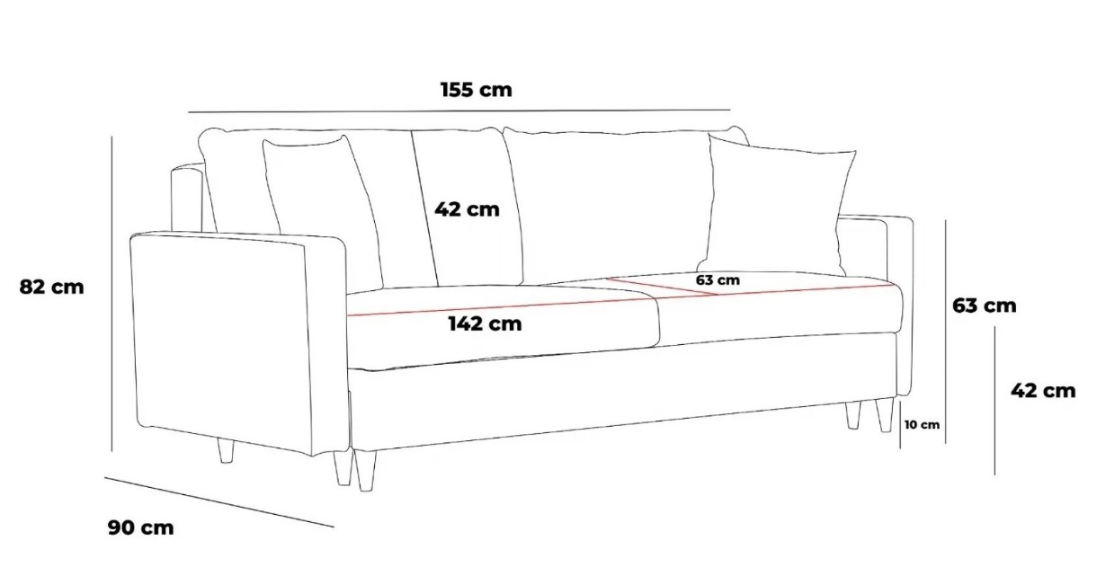 Dimensiunea canapelei (l×L×Î)155x90x82 cm