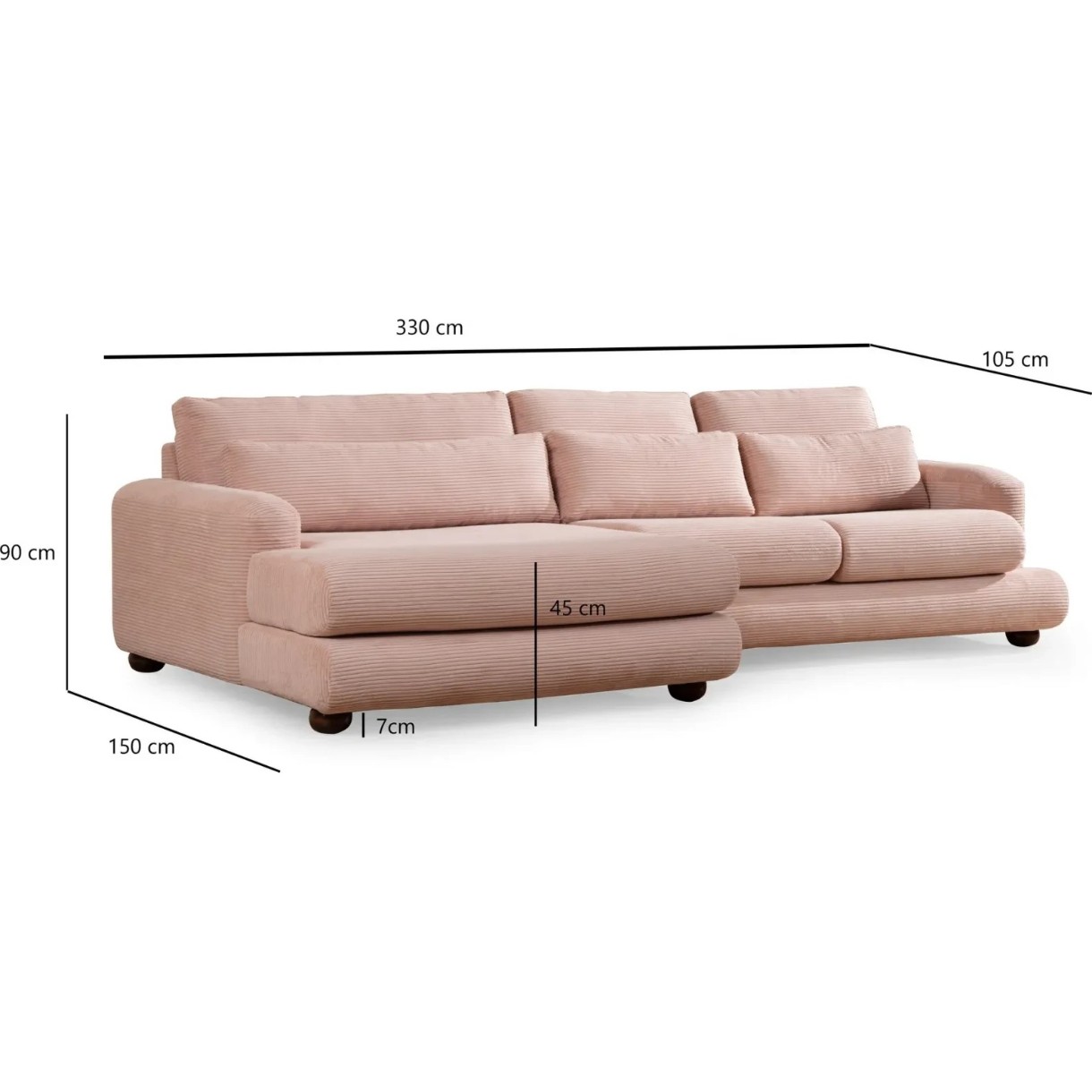 Canapea de colț Trendy L2-2R Pink L 330x105x90cm GTR003496