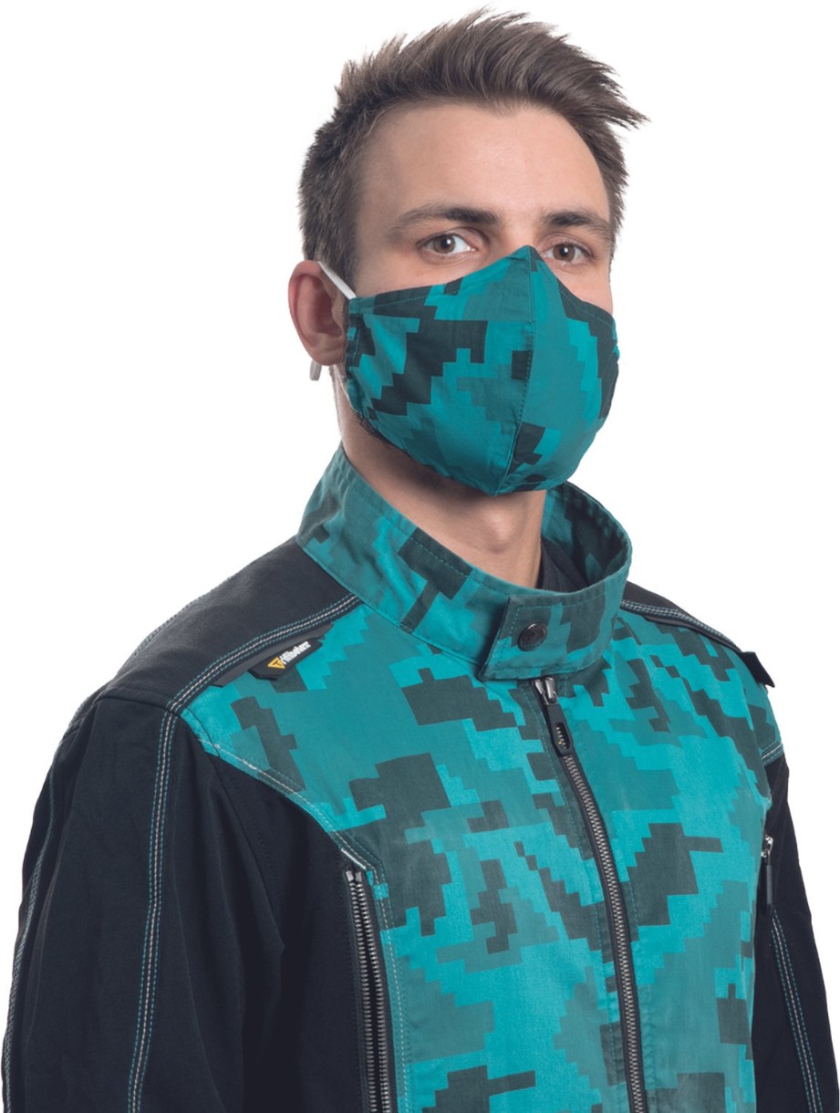 Mască de protecție reutilizabilă din bumbac 100% cu strat dublu. Straturile exterioare și interioare sunt confecționate din tricot (Single Jersey) cu o densitate de 150 g/m². Marginea superioară a măștii se ajustează în funcție de forma nasului, datorită inserției flexibile. Elasticul ajustabil asigură o fixare confortabilă pe urechi. Masca poate fi spălată la o temperatură de până la 60 °C și călcată la o temperatură de până la 150 °C.