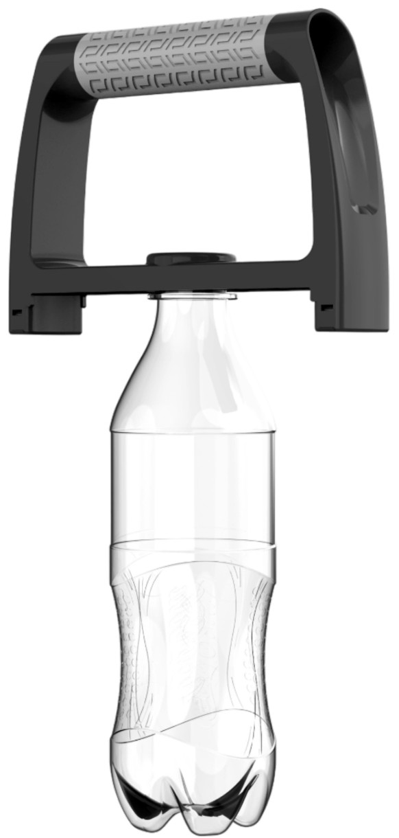 Și mai mult? Umpleți câteva sticle de plastic cu apă, atașați mânerele, și aveți gantere improvizate. Puteți ajusta greutatea în funcție de dimensiunea și volumul sticlelor. Mânerele rezistă la o greutate de până la 5 kg. Fără sticle, mânerele cântăresc doar câteva grame și pot fi transportate cu ușurință oriunde.