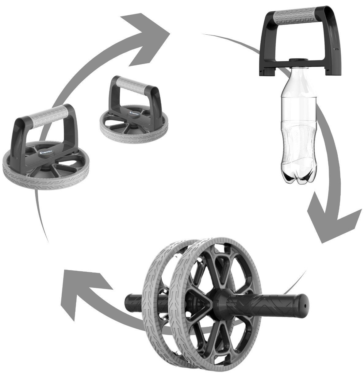 Demontând rollerul, obțineți mânere pentru flotări — în doar câteva secunde! Acestea vă permit să coborâți mai adânc în timpul flotărilor, implicând mai eficient musculatura pieptului.