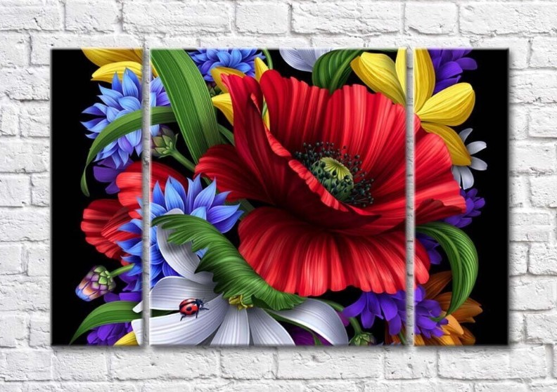 Pictură Magic Color Bouquet of Colorful flowers on a Black background (500131)