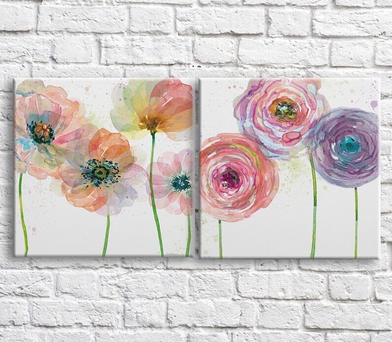 Pictură ArtPoster Poppies with colorful petals on a White background (3467753)