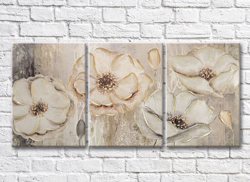 Pictură Rainbow Large flowers on a beige background (3572582)