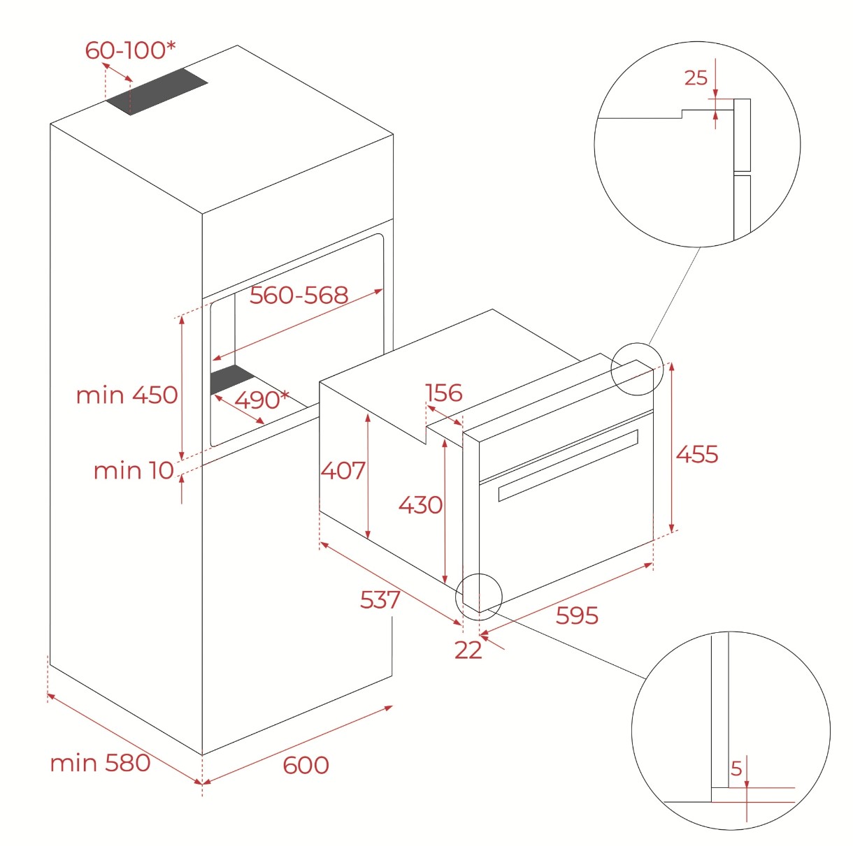 Măsuri de incorporare45x56x49 cm